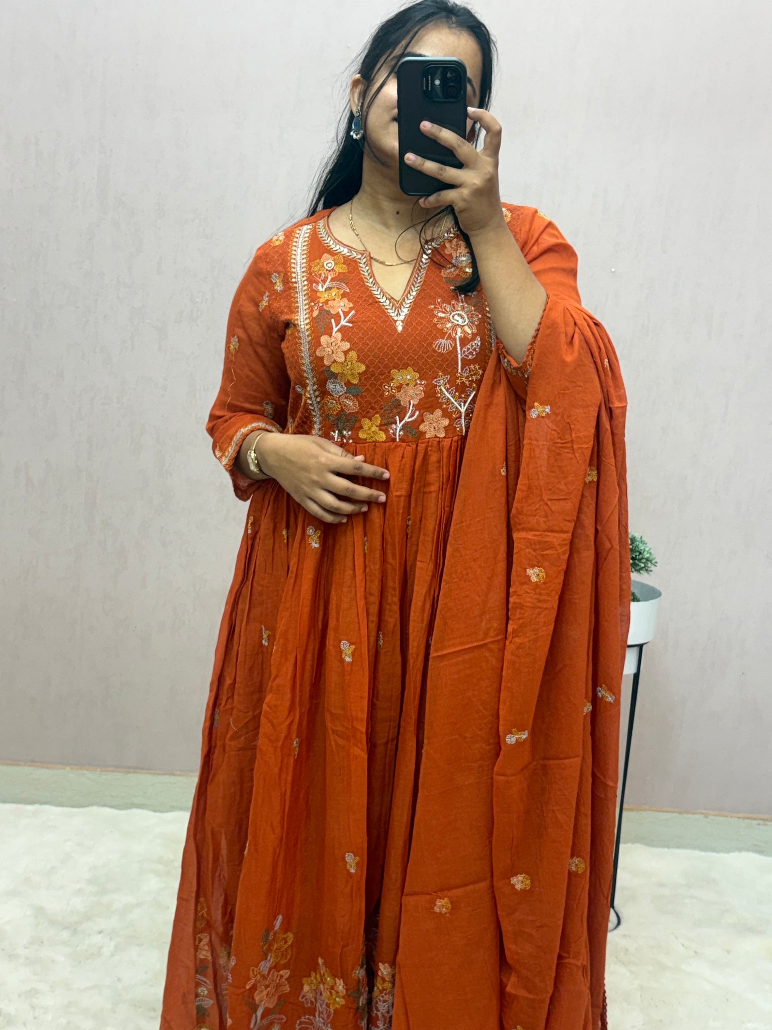 Ajrakh Cotton Anarkali with Pant and Dupatta set