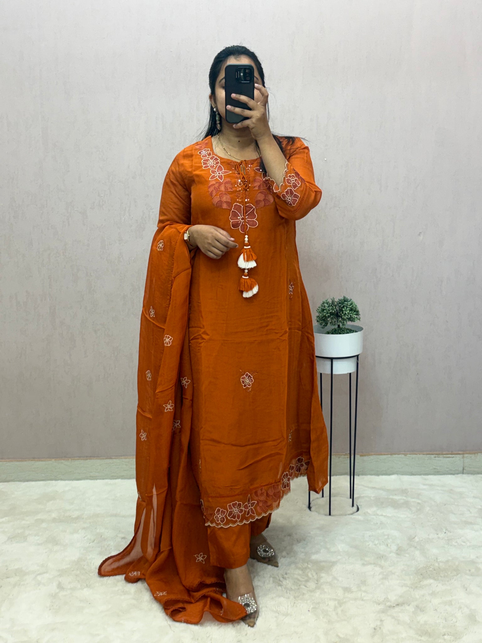 Rust Organza A-line Suit Set